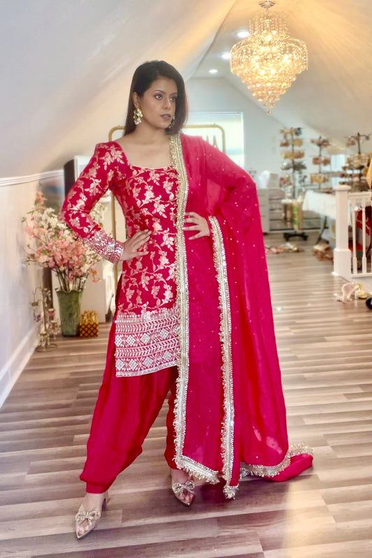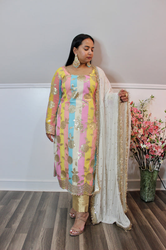 Our salwar suits are designed to fit both your style and your life. From everyday wear to something a little more festive, we’ve got a bit of everything—flowy cottons, luxe silks, bold prints, soft pastels, and silhouettes that range from timeless to trendy. We also offer custom stitching and sizing, so your outfit feels just right, made just for you.