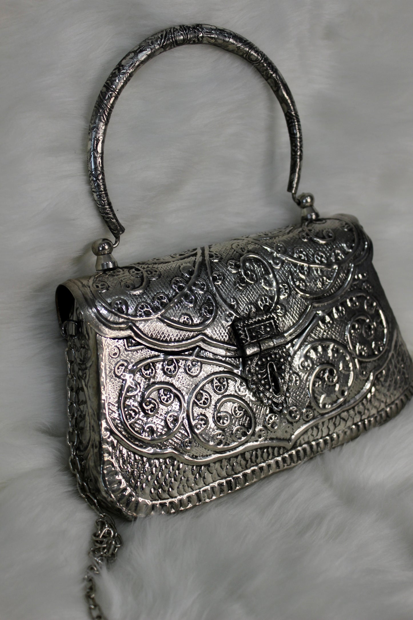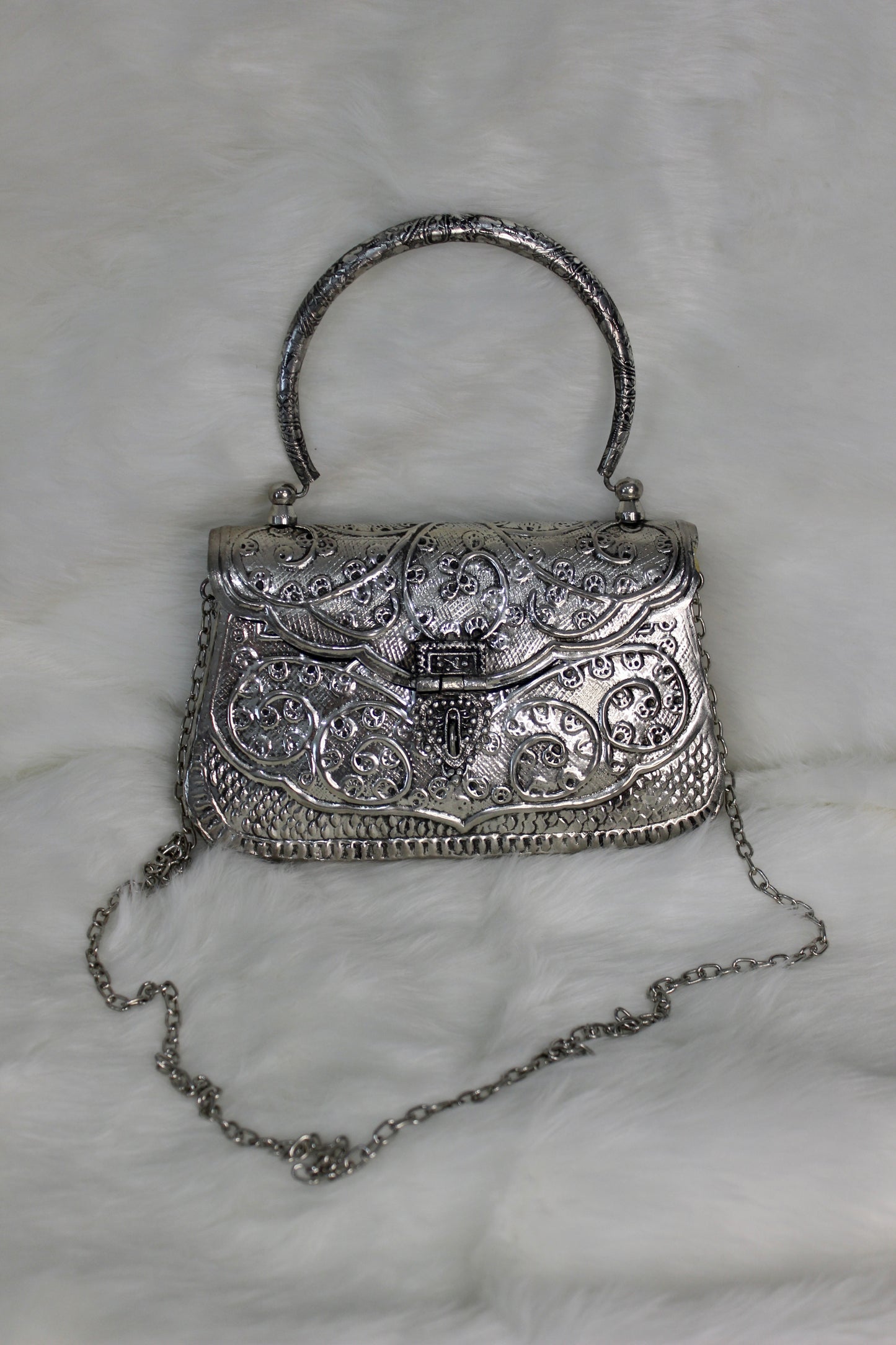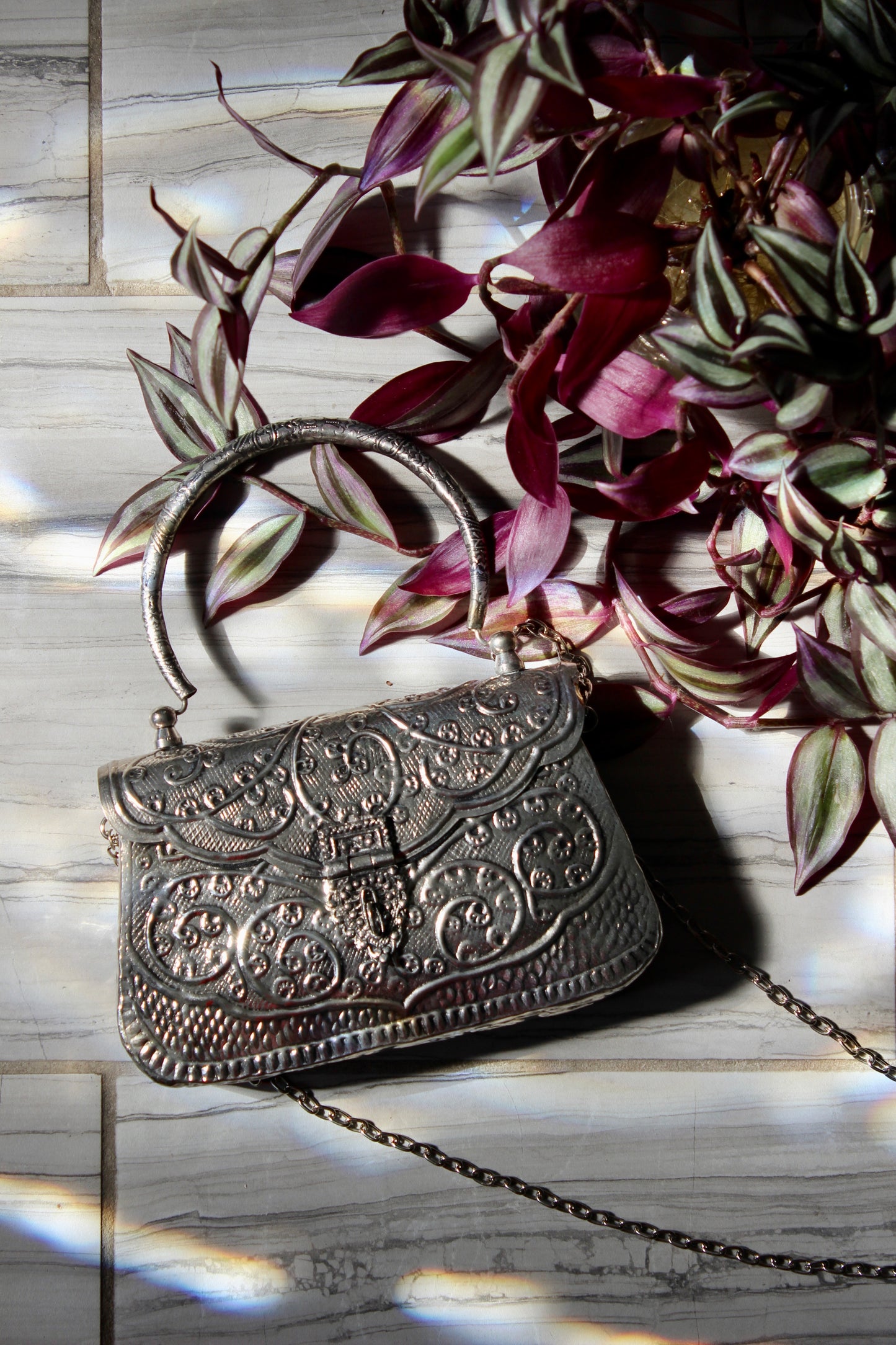 This German silver purse combines timeless metalwork with luxurious functionality. Versatile enough to complement bohemian ensembles or elevate everyday casual wear, this statement piece transitions seamlessly from day to evening. The substantial construction ensures durability, making it a lasting investment for those who appreciate distinctive accessories with character and refined detail.