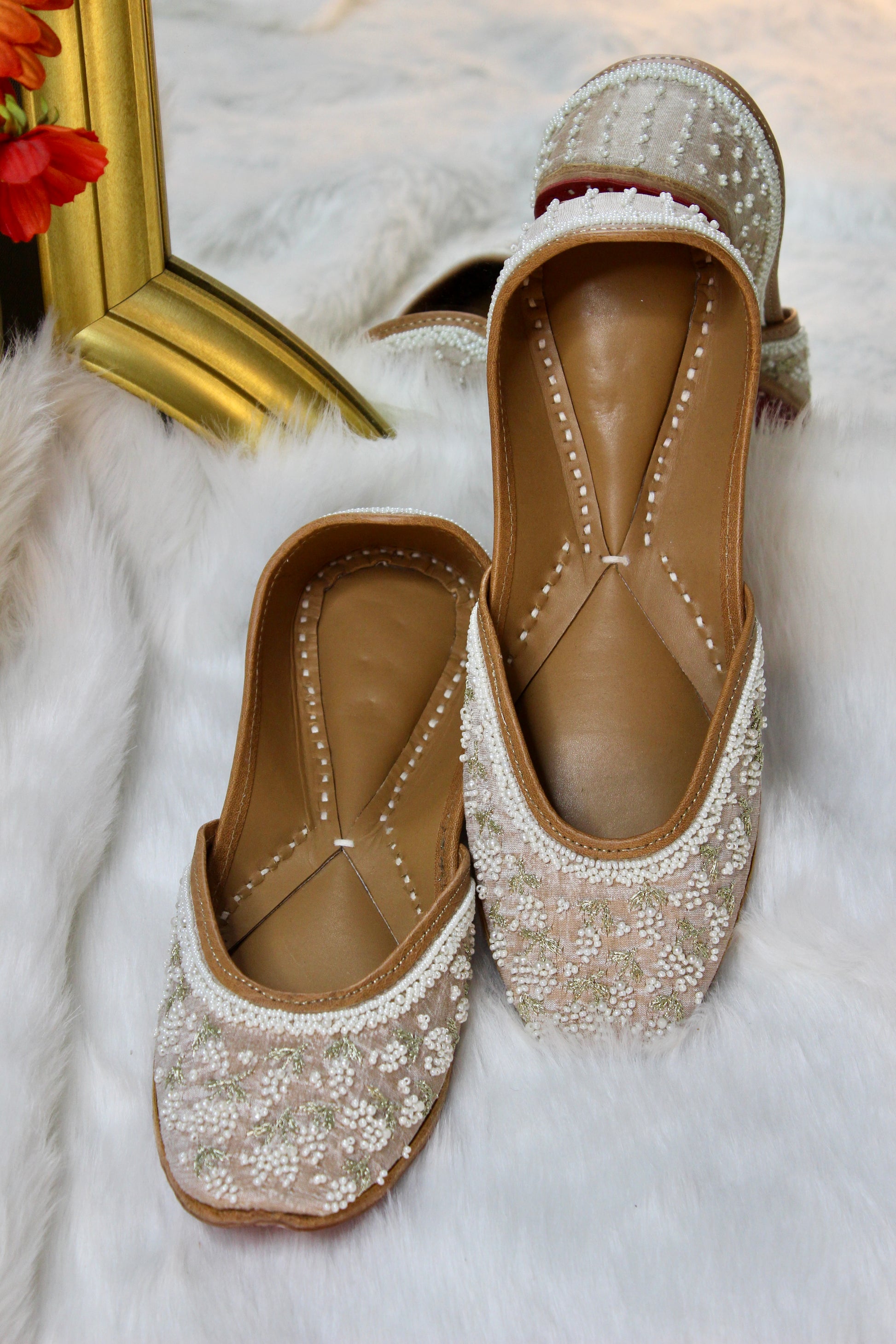Pair these juttis with ethnic ensembles, such as lehengas, sarees, or salwar suits, for weddings and festive occasions. For a more casual yet chic look, team them with denims, cotton dresses, or even co-ord sets. Perfect for brunches, mehendi functions, destination weddings, or simply adding flair to everyday outfits. These juttis aren’t just for traditional outfits—they effortlessly elevate Western wear too. Pair them with denims and a crisp white shirt, flowy maxi dresses, or even tailored co-ord sets for a fusion-chic vibe. Perfect for festive events, casual brunches, weddings, travel days, or making everyday outfits stand out with a touch of sparkle.